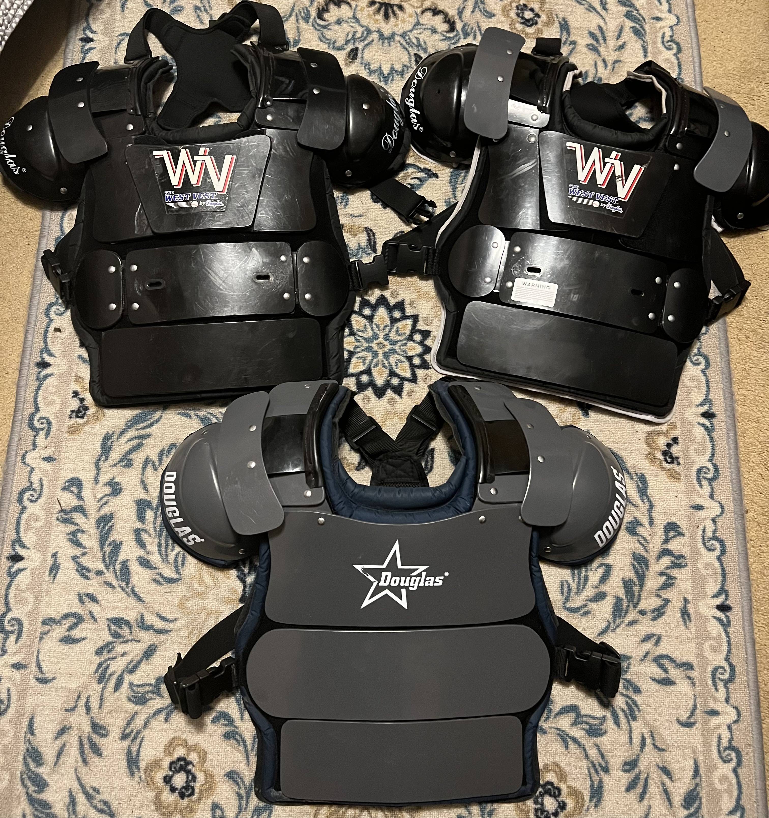 2. Does anyone have a 13" Douglas chest protector with gap protection that would be interested in trading for a 15" model? I have the newer gray one and a couple of Douglas West Vest that have been retrofitted with gap protection and buckles.